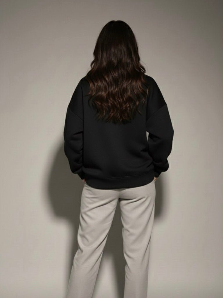 Our Oversize Black Crewneck is crafted from premium, high-density cotton for a soft, durable feel. Designed with a relaxed fit and drop shoulders, it delivers a simple, everyday silhouette that looks and feels good from the first wear.