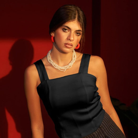 Square neck sleeveless solid knit. Made with a durable, high-quality stretchable knit fabric, this sleeveless top features a stylish square neckline that's perfect for any occasion.