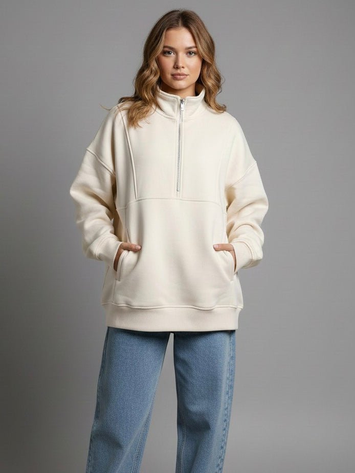 Light Cream Half-Zip oversized Sweatshirt